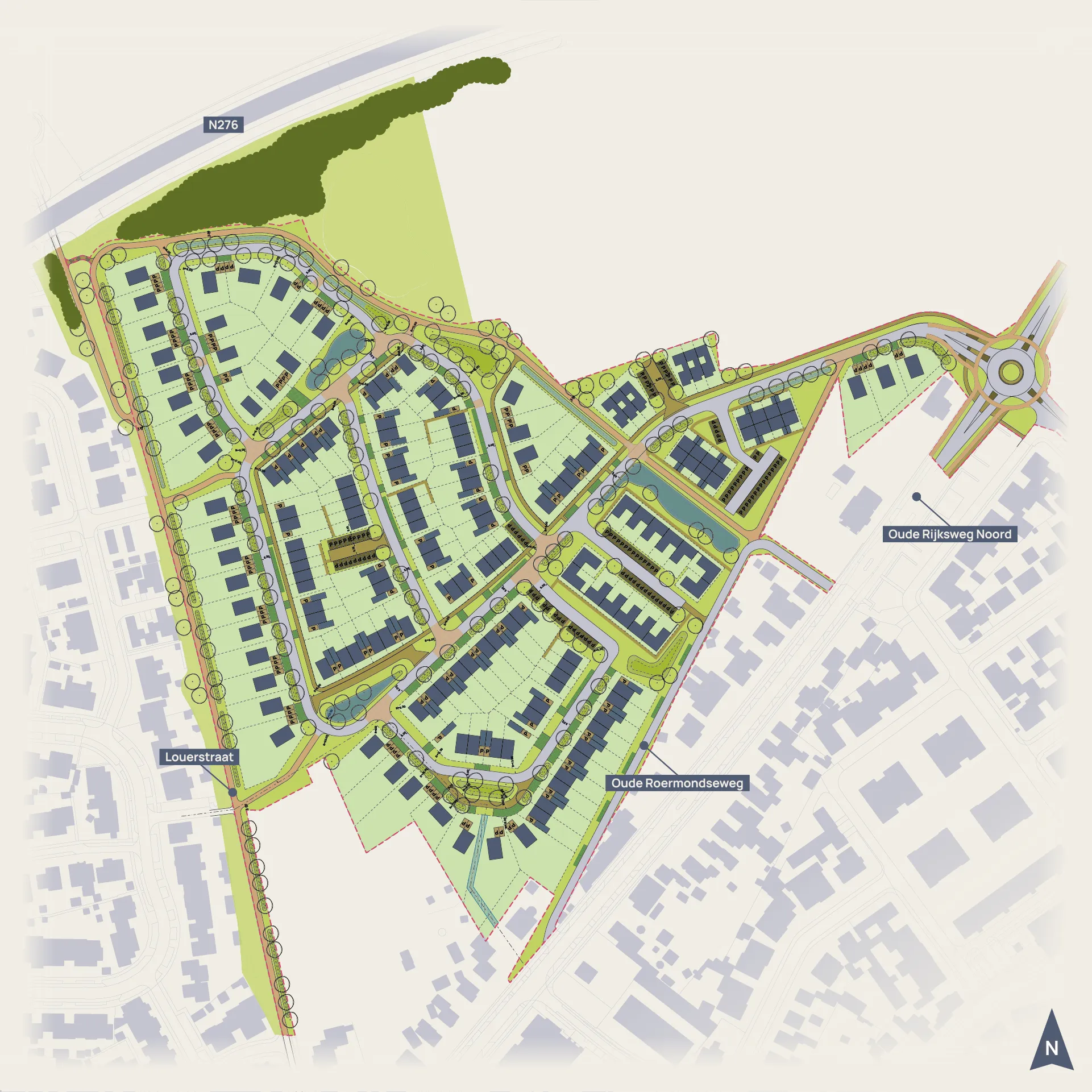 Tussen de Oude Rijksweg Noord, de Louerstraat en de N276 verrijst Louerveld – een nieuwe woonwijk met een eigen karakter. De wijk is vernoemd naar de Louerstraat, die het oude Middelveld en het nieuwe Louerveld verbindt. Hier komt alles samen: dorps wonen in een groene omgeving, met moderne gemakken binnen handbereik. De ligging van Louerveld is ideaal: dichtbij het centrum van Susteren, waar u terecht kunt voor uw dagelijkse voorzieningen en het NS-treinstation, terwijl grote uitvalswegen zoals de A2 en de A73 snel en eenvoudig bereikbaar zijn.
